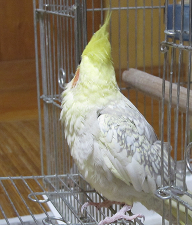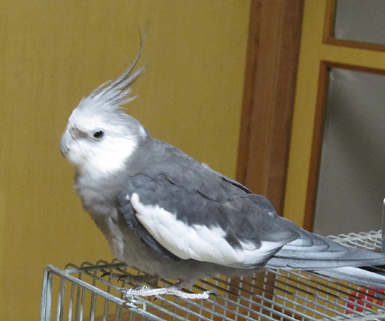 放鳥中のはなちゃん(♂)。小心者。