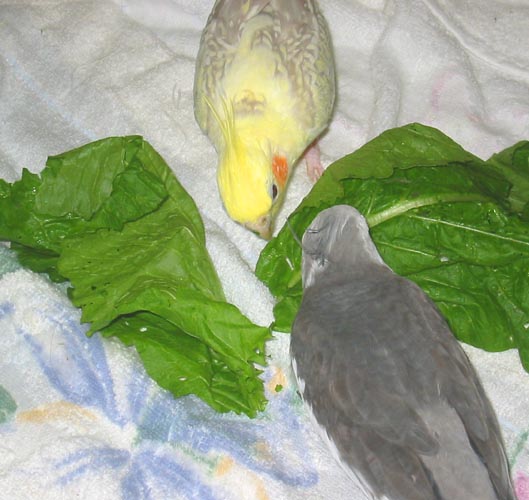遊びながら小松菜を食べています。