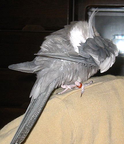 はなちゃんは警戒心が強く、逆に、ななちゃんは警戒心がなさすぎ。オカメもいろんな性格があるんだなぁ。