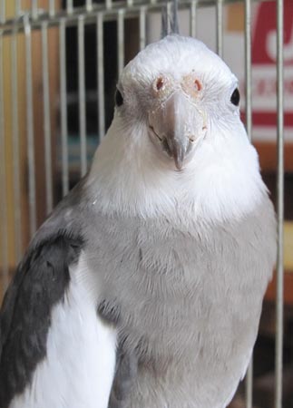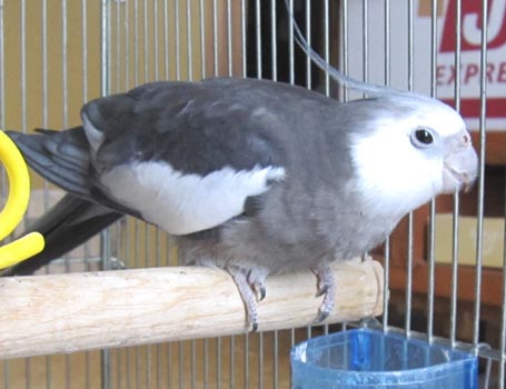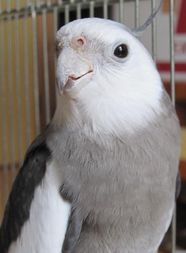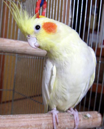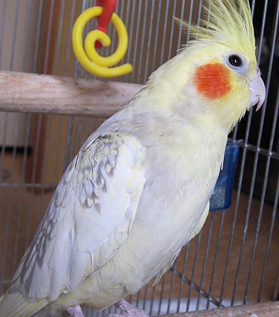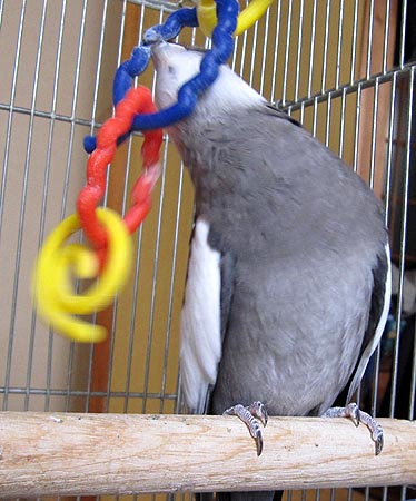 でも、放鳥時に扉を開けると、はなちゃん(♂)が真っ先に出てくるのですが、ななちゃん(♀)は、それほどでもなくて、ケージの中でまったりしてるんですよ。そしたら、はなちゃん(♂)は、ななちゃん(♀)が出てくるまで出入口でひたすら待ってるんです。うーん。これって一応、夫婦愛(というか、はなちゃんが一方的にななちゃんラブ?)なのかしら?